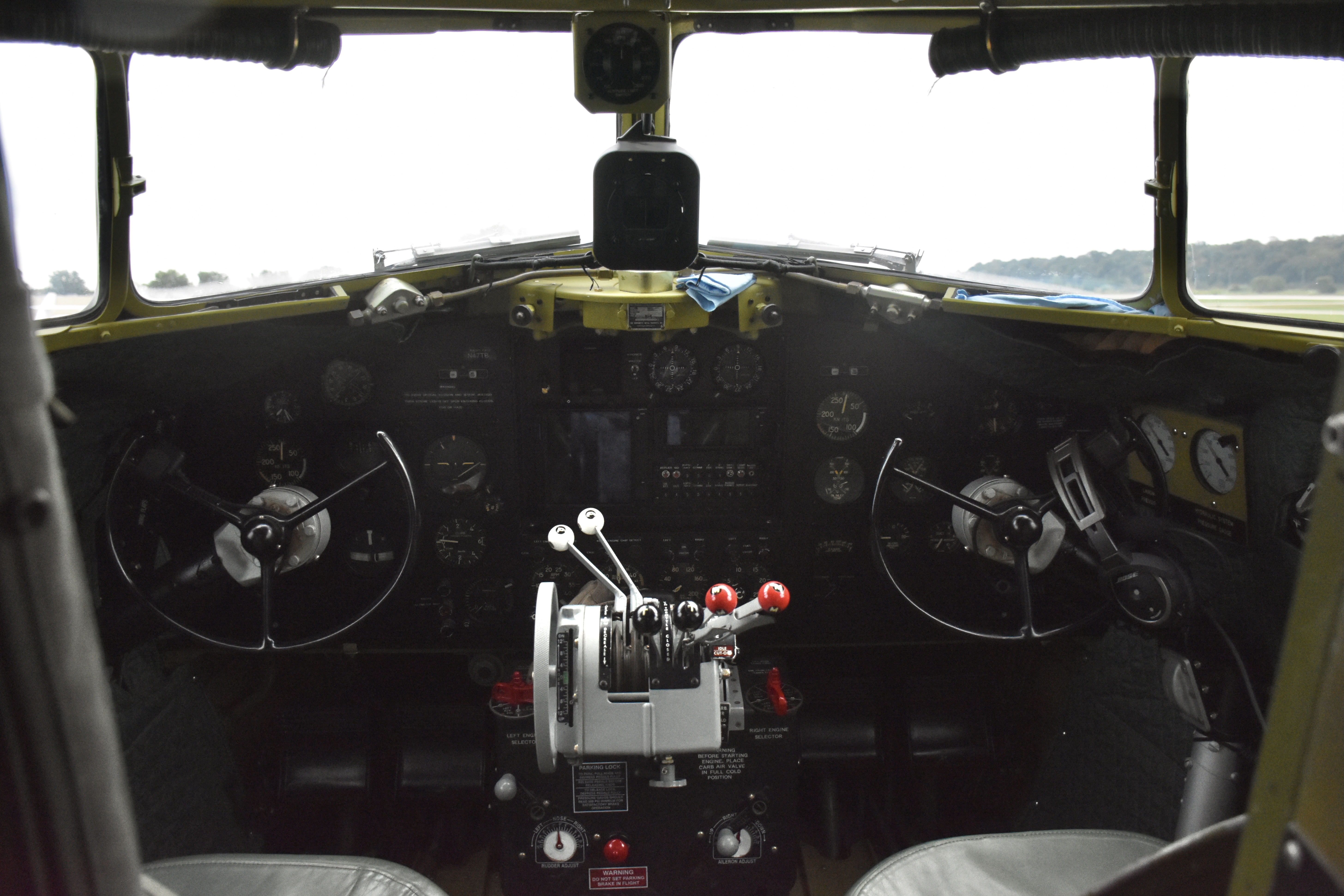 We boarded and got a safety briefing, and before we knew it we were ready to go. By that time, the sun had begun to peek through the clouds — it was a seemingly perfect day. The two Pratt & Whitney Twin Wasp engines purred as we taxied and roared as we powered down the runway. Seeing the prop vortices from inside the plane was one of the coolest aviation-related experiences I’ve had to-date.
